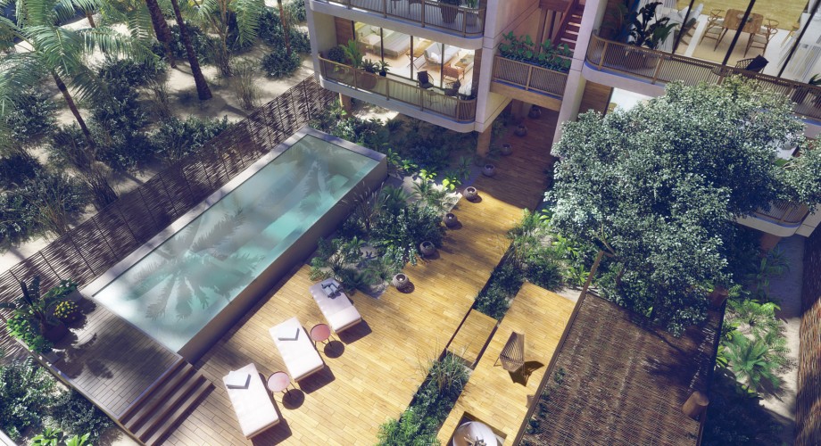 El proyecto esta dividido en cuatro cuadrantes, con dos edificios mirando hacia el mar y los otros dos, hacia la Laguna Yalahao.